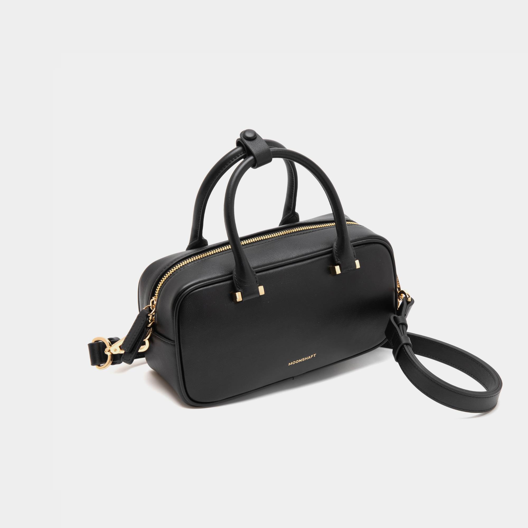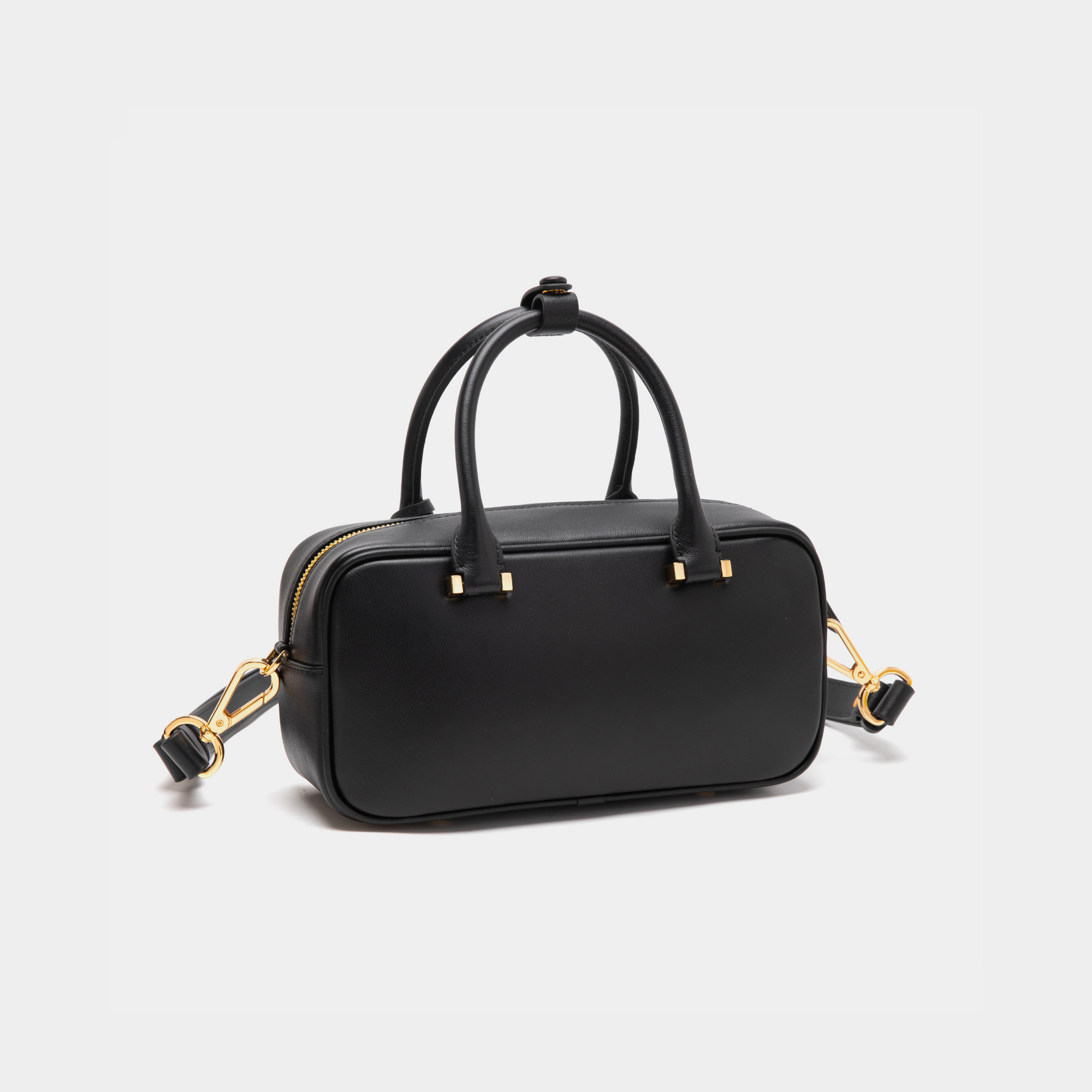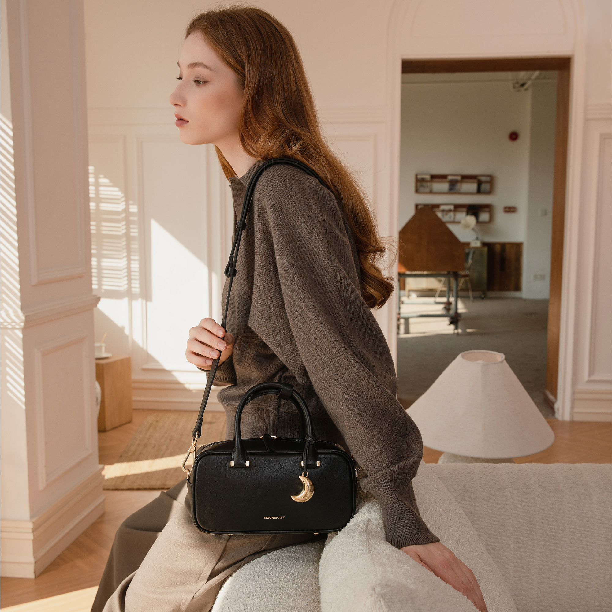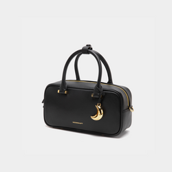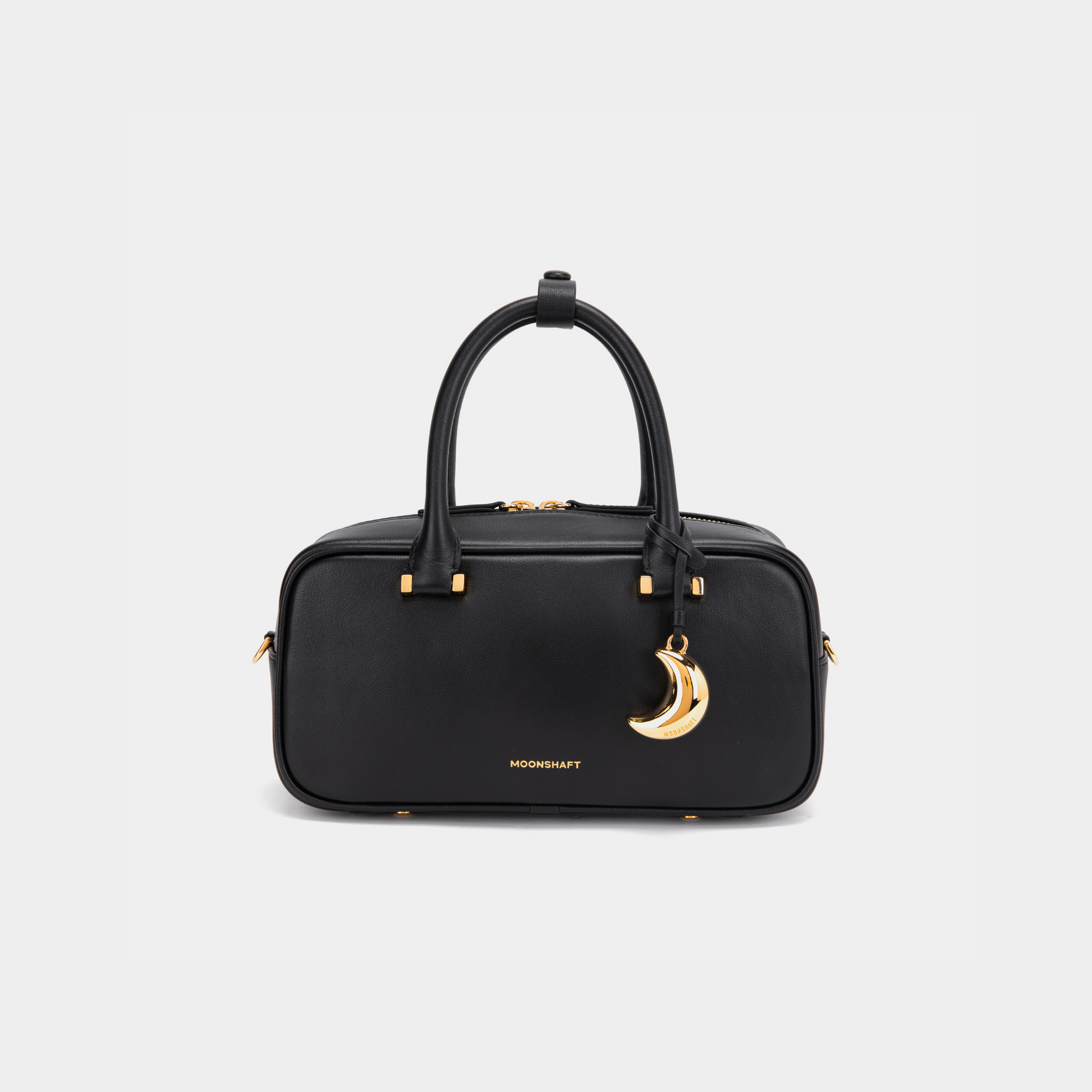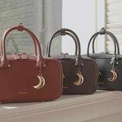 Discover the perfect balance of elegance and functionality with the Crescent Bowling Bag. Crafted from luxurious full grain nappa cowhide leather, this structured bag features a sleek silhouette accentuated by a signature crescent-moon-shaped charm for a touch of sophistication. The spacious interior, lined with a soft, durable textile, includes a secure zip closure and well-organized compartments to keep your essentials neatly arranged. Designed with dual top handles and a detachable, adjustable strap, the Bowling Bag adapts seamlessly to your lifestyle—whether carried by hand, on shoulder or worn crossbody. A timeless companion for workdays and evenings alike, this bag combines modern style with everyday practicality.