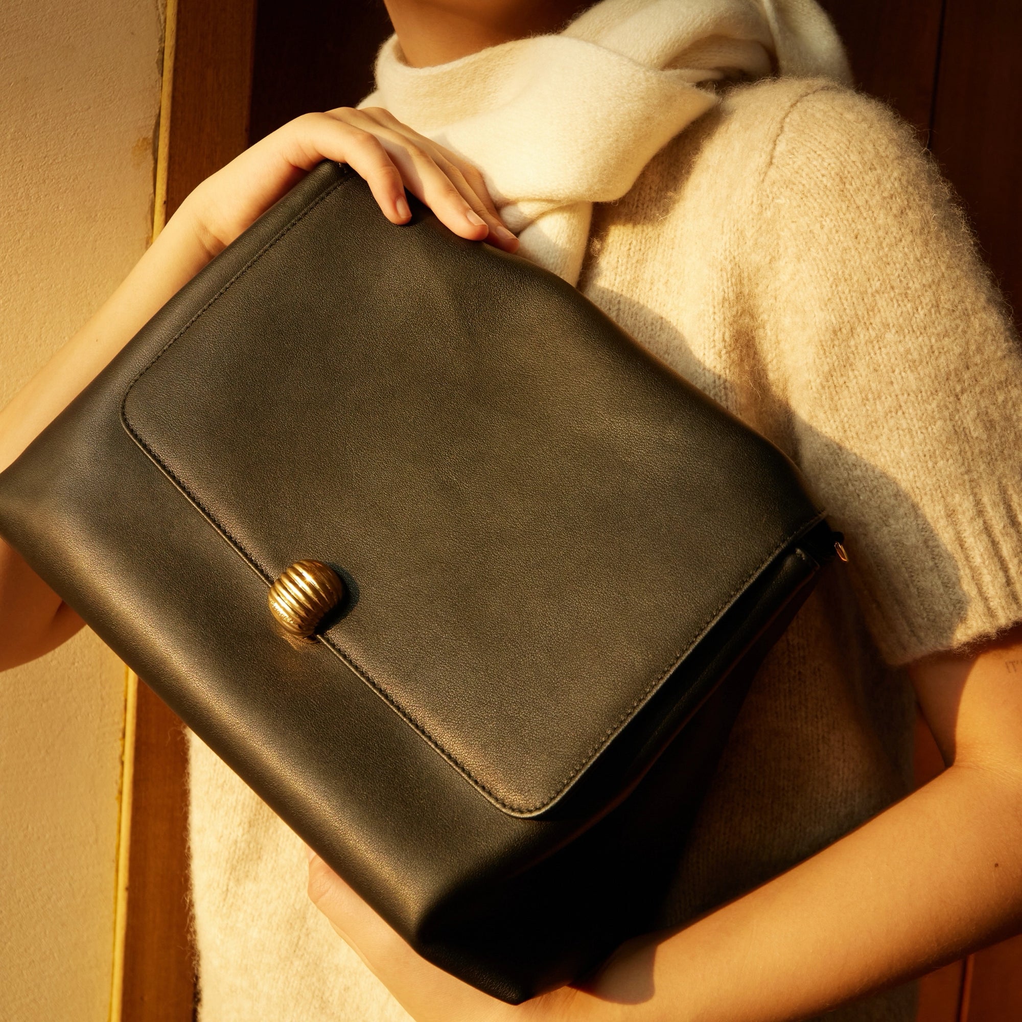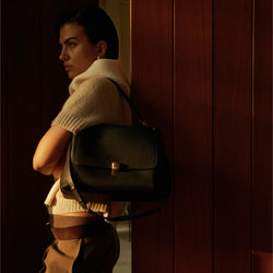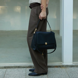Inspired by the cosmos, the Nebula Collection reflects Moonshaft’s vision of light, lines, and movement. Nebula Hobo 36 is designed with a soft silhouette, crafted from full-grain nappa leather for a smooth, elevated finish. The lock is sculpted with a streamlined shape that echoes the quiet flow of nebulae in the universe, while polished metal surfaces lend an understated shine. Clean, curved lines run through the metalware like natural celestial paths, with light gliding across its contours to create a soft, shifting glow.