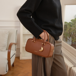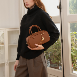Crescent Bowling 牛皮革手袋 —— 優雅與實用性的完美平衡。這款手袋採用奢華的全粒面頭層納帕牛皮製成,俐落極簡的輪廓搭,點綴標誌性的金色小彎月吊飾,更顯精緻。寬敞的內部空間採用柔軟耐用的紡織布內襯,配有拉鍊開合和收納隔層,確保您的隨身物品井然有序。Crescent Bowling 配備雙手柄和可拆卸調節的肩帶,讓您隨時隨地手提、單肩、斜背,輕鬆應付各種生活場景。現代風格與實用性兼具,無論是工作日還是夜晚約會都可以成為您的經典時尚夥伴。