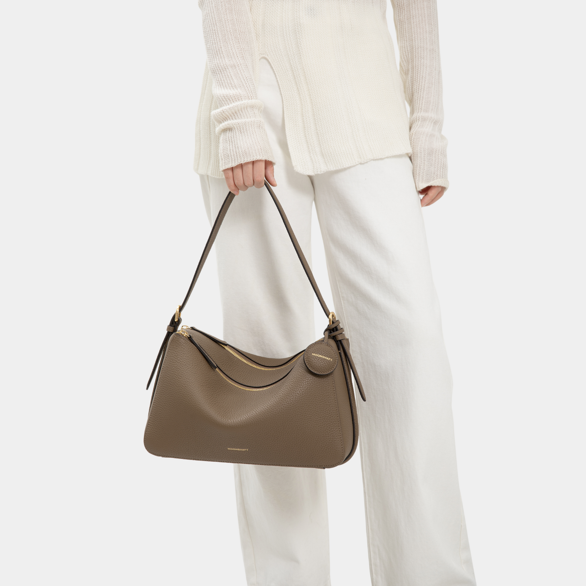 Double Zip 小牛皮袋 32 採用精選的全粒面頭層荔枝紋小牛皮革製成,兼具耐用性與天然質感。全新 32 尺寸帶來更寬敞的容量,同時保留品牌標誌性的俐落線條與結構。專為手提與單肩揹而設計,內部配置雙主隔層與雙拉鍊開合,讓日常必需品井然有序。柔軟又具厚度的皮革賦予持久韌性,精緻金屬配件與拉鍊更進一步提升美感與耐用度。