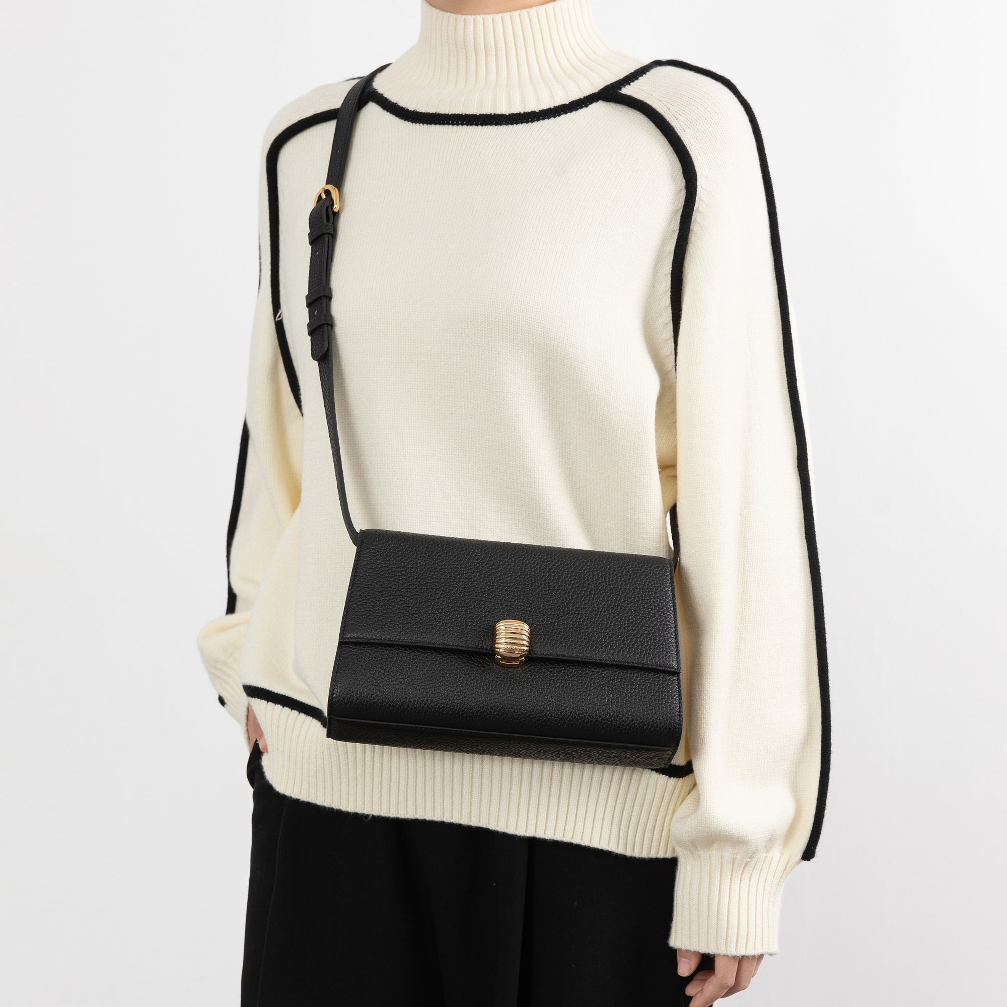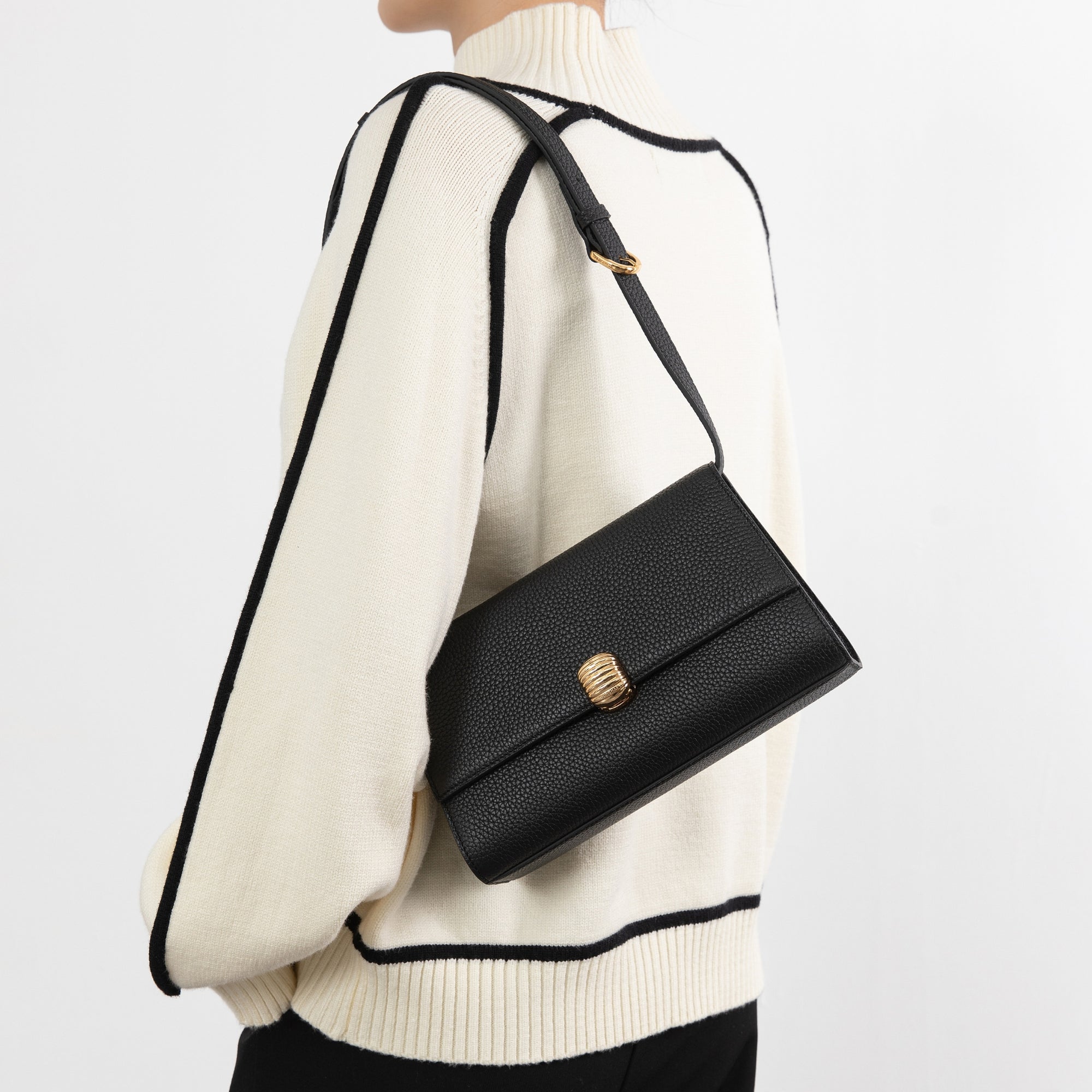 拆下肩帶時,可作為手拿包使用,展現內斂優雅的氣質;裝上肩帶後,則可手提、單肩背或斜背,自然切換不同穿搭狀態,在俐落與隨性之間取得平衡。這是一款適合納入日常衣櫥的包款,優雅融入每一天的穿著節奏。