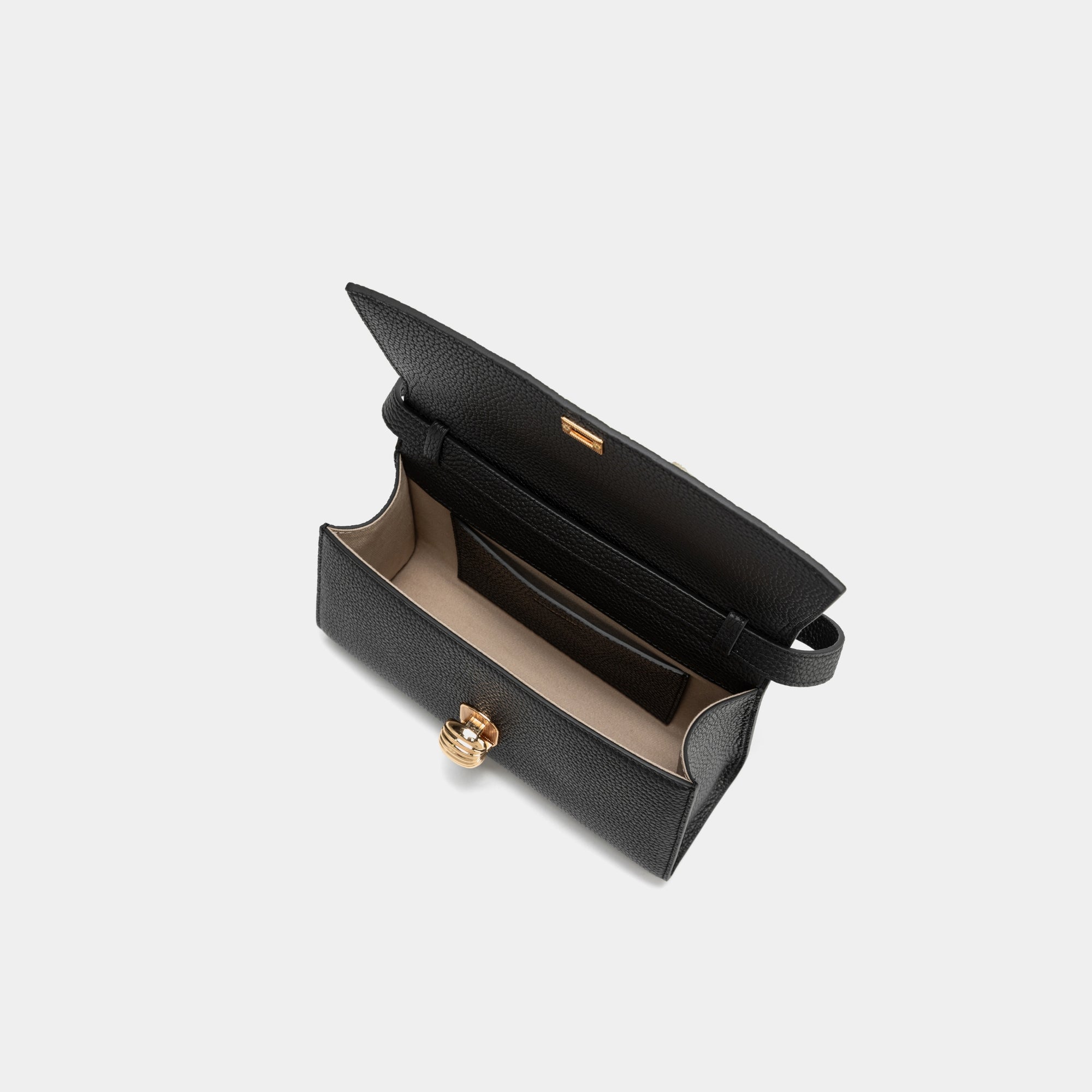 靈感源自宇宙星雲,Nebula 系列延續 Moonshaft 對光線、線條與流動感的設計想像。Nebula East/West 24 手袋以修長的 East–West 橫向比例勾勒出俐落而現代的輪廓。選用全粒面頭層荔枝紋小牛皮製作,皮革肌理細緻而富有結構感,搭配具雕塑感的 Nebula 金屬鎖扣,成為低調卻精緻的視覺焦點,金屬光澤在光線下柔和流轉。