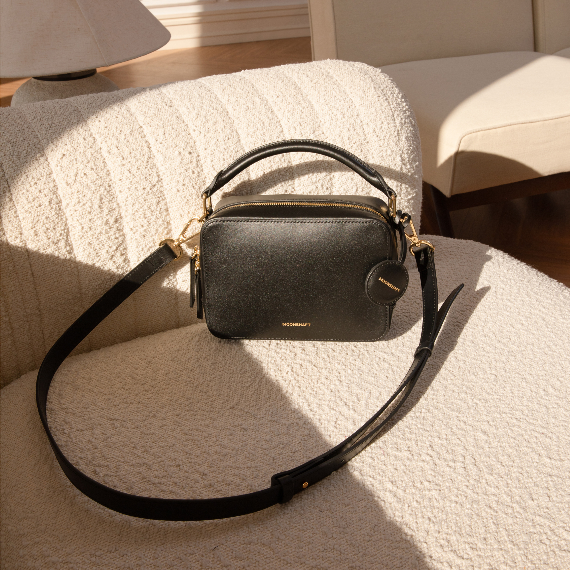 在升級版本中,我們以不同視角設計了新的金屬配件,結合功能與美感。手柄現在通過靈活的方形扣環與D型扣連接手袋,確保在使用斜挎帶時能保持平衡,不會影響包袋的形狀與結構,進一步提升了包款的外觀與功能性。