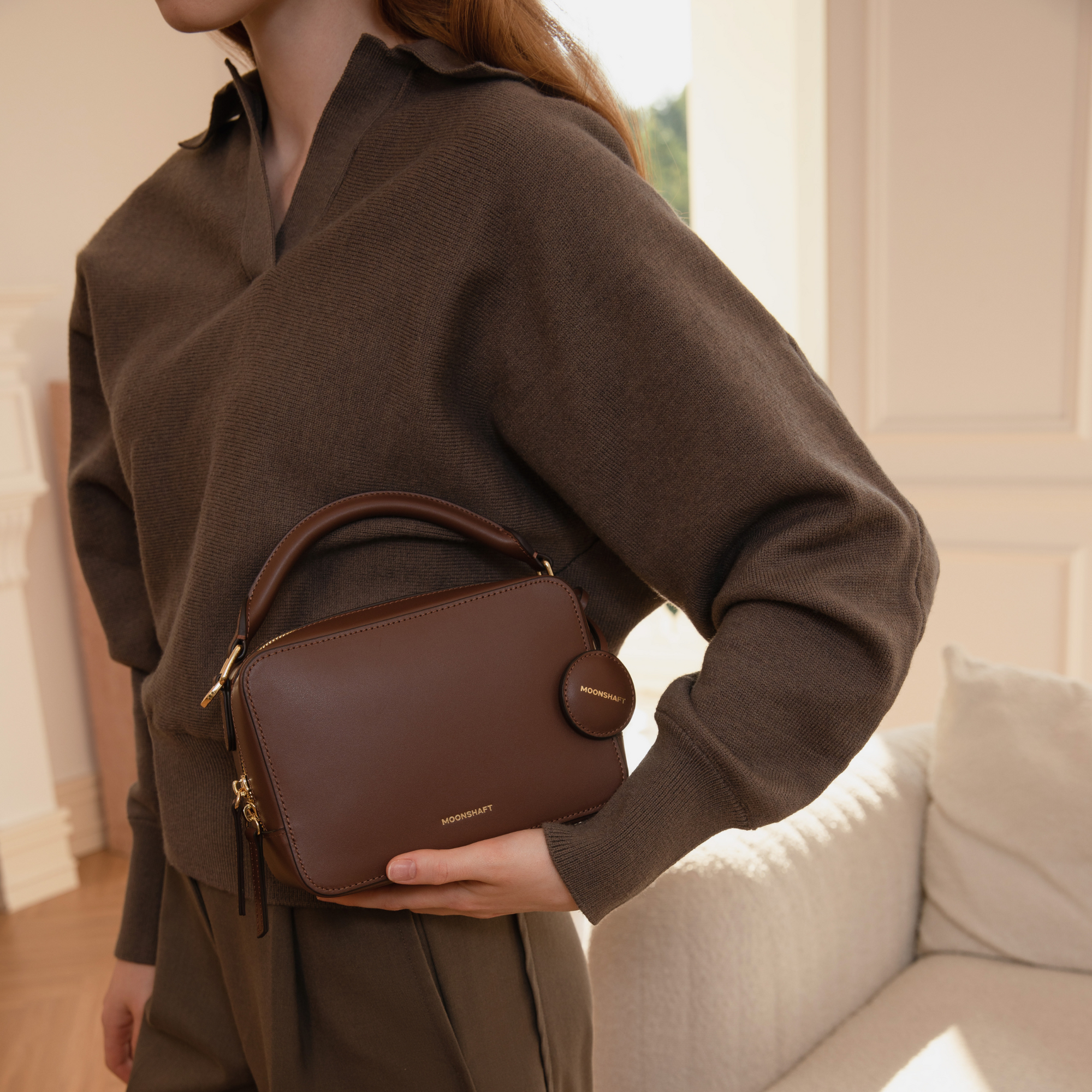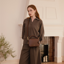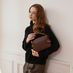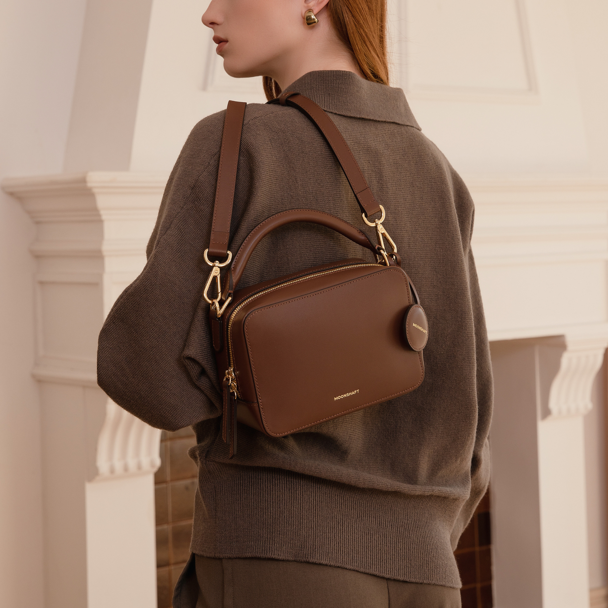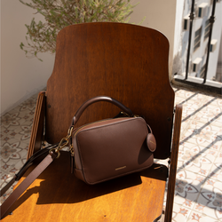 在升級版本中,我們以不同視角設計了新的金屬配件,結合功能與美感。手柄現在通過靈活的方形扣環與D型扣連接手袋,確保在使用斜挎帶時能保持平衡,不會影響包袋的形狀與結構,進一步提升了包款的外觀與功能性。